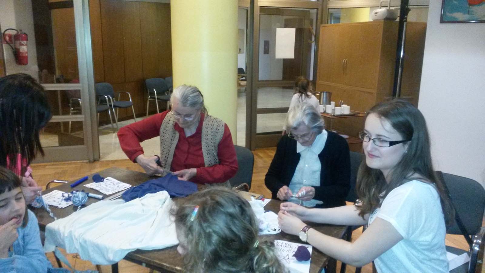 U sklopu projekta »Umreženi susreti« OŠ Izidor Kršnjavi je pozvala Dom za starije osobe Centar na suradnju, a mi smo se s veseljem odazvali. Kroz jednotjedne radionice kukičanja koje su se održavale u prostorijama Doma od 16.-21.svibnja, korisnici Doma su učili djecu kukičanju, koristeći materijal napravljen od stare odjeće. Zajedničkim snagama stvorio se veseli tepih i još veselije uspomene. Na ovaj način, postigla se međugeneracijska suradnja u punom smislu te riječi, ali i prenošenje znanja, iskustva i tradicije od starijih generacija k mlađima. Izložbu se može pogledati u prostorijama OŠ Izidor Kršnjavi do 03. lipnja 2016.