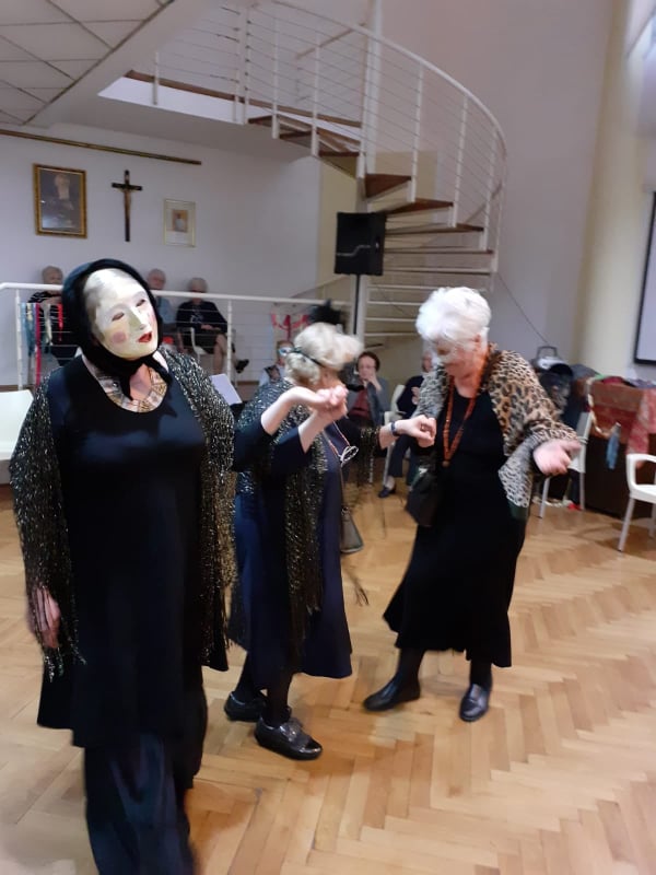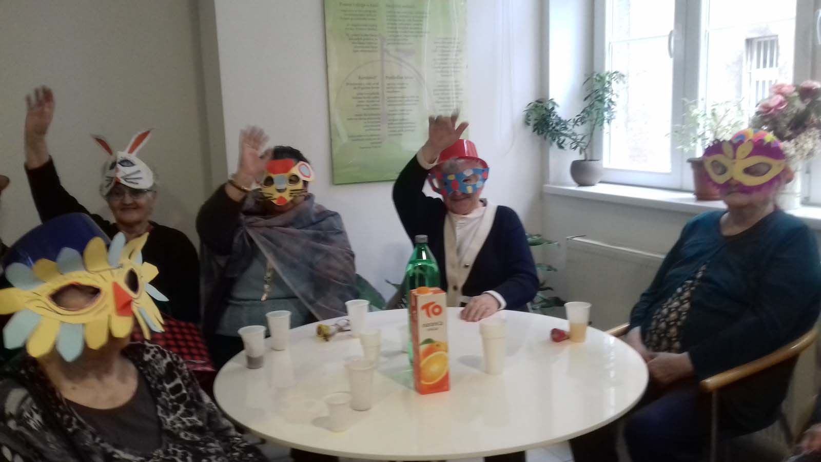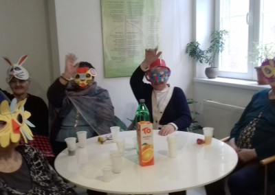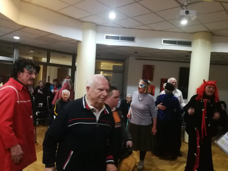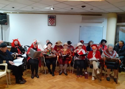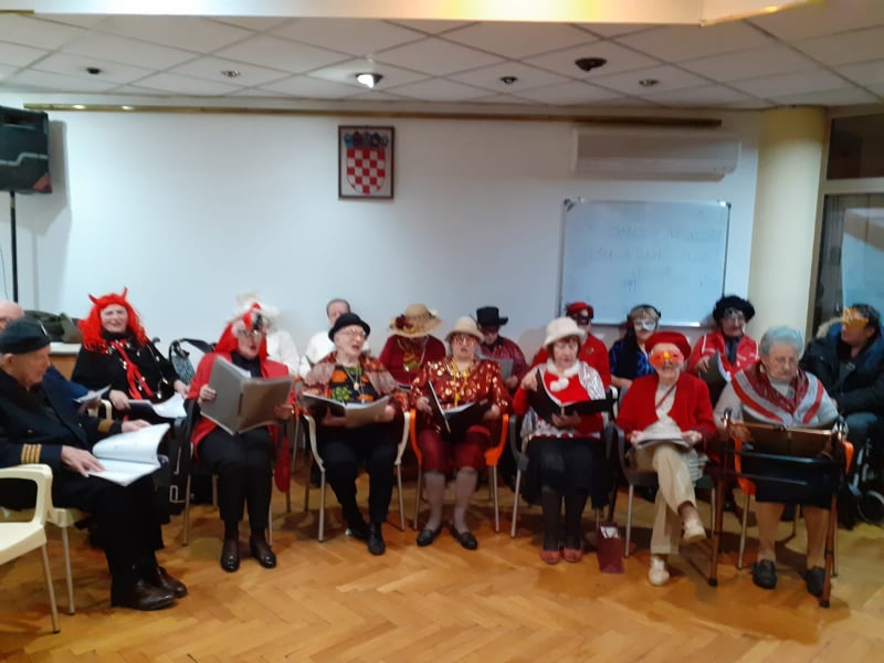 Na pokladni utorak, na obje lokacije, održan je tradicionalni maskenbal u našem domu. Imali smo prigodu biti sve što smo htjeli. Bilo je vukova, olinjalih mačaka, barskih plesačica, vražica, kapetana, škorpija, nažigača, kraljica i klaunova. Uz maškarane članove zbora Zlatna krila, te goste glazbenike bračni par Copić i g. Hribara nije moglo biti dosadno. Pjevalo se i veselilo od fašničkog ručka, pa sve do večere.