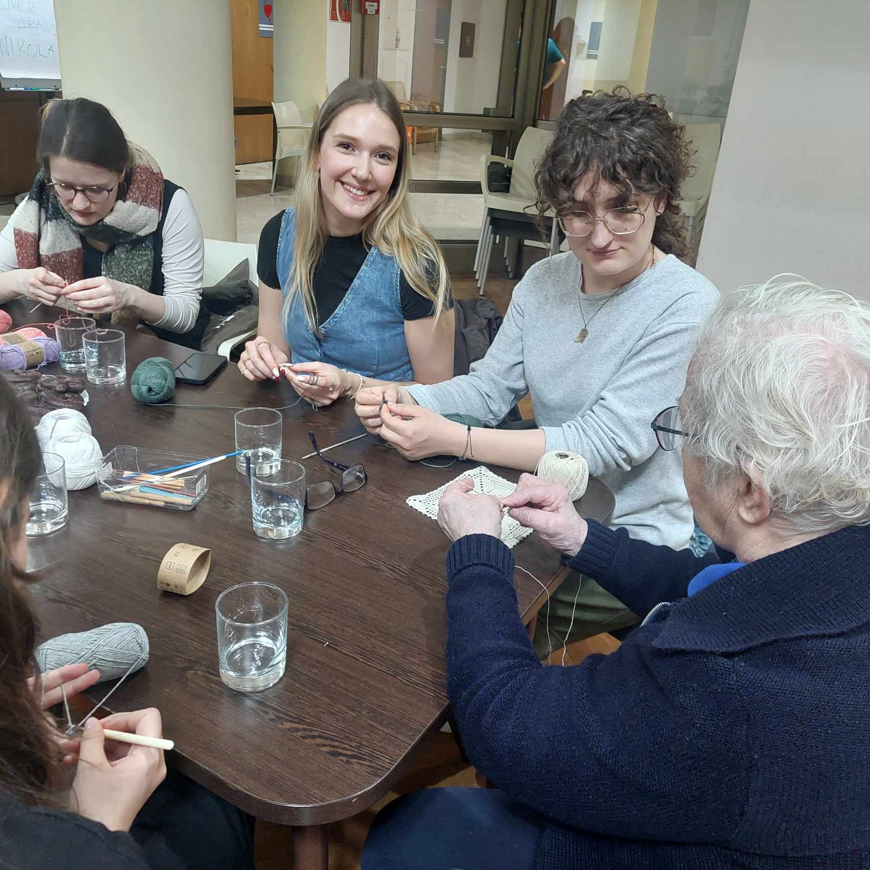 U Domu za starije osobe Centar, u suradnji sa Studentskom volonterskom udrugom ESN Zagreb, jučer je održana vesela i topla radionica pletenja i kukičanja koja je spojila dvije naizgled različite generacije – korisnike doma i strane studente. U sklopu ove jedinstvene interkulturalne aktivnosti, studenti su imali priliku naučiti vještine ručnog rada iz prve ruke, a pritom su se rađala nova prijateljstva i razmjenjivala životna iskustva.