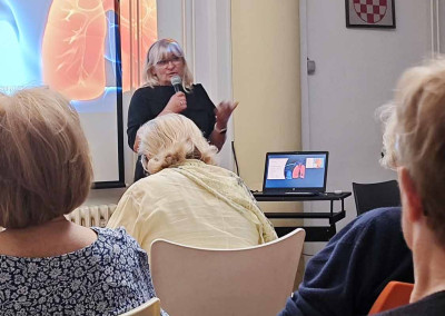 Poseban naglasak stavljen je na prevenciju bolesti dišnog sustava te na načine zaštite plućnog zdravlja, osobito u starijoj životnoj dobi. Sudionici su imali priliku doznati korisne savjete i preporuke koje mogu primijeniti u svakodnevnom životu, a predavanje je zaključeno praktičnom vježbom za poboljšanje disanja.